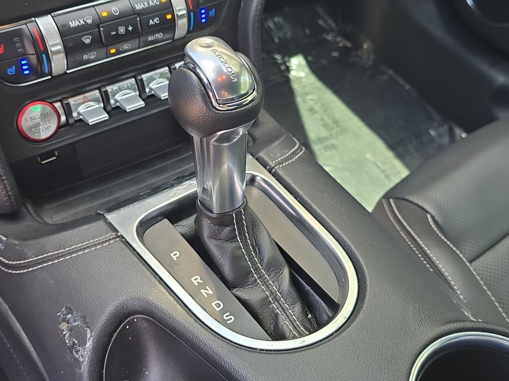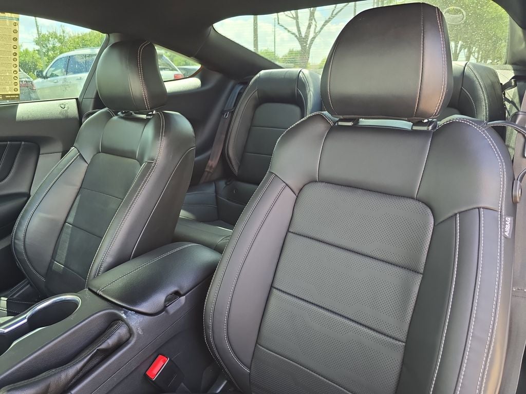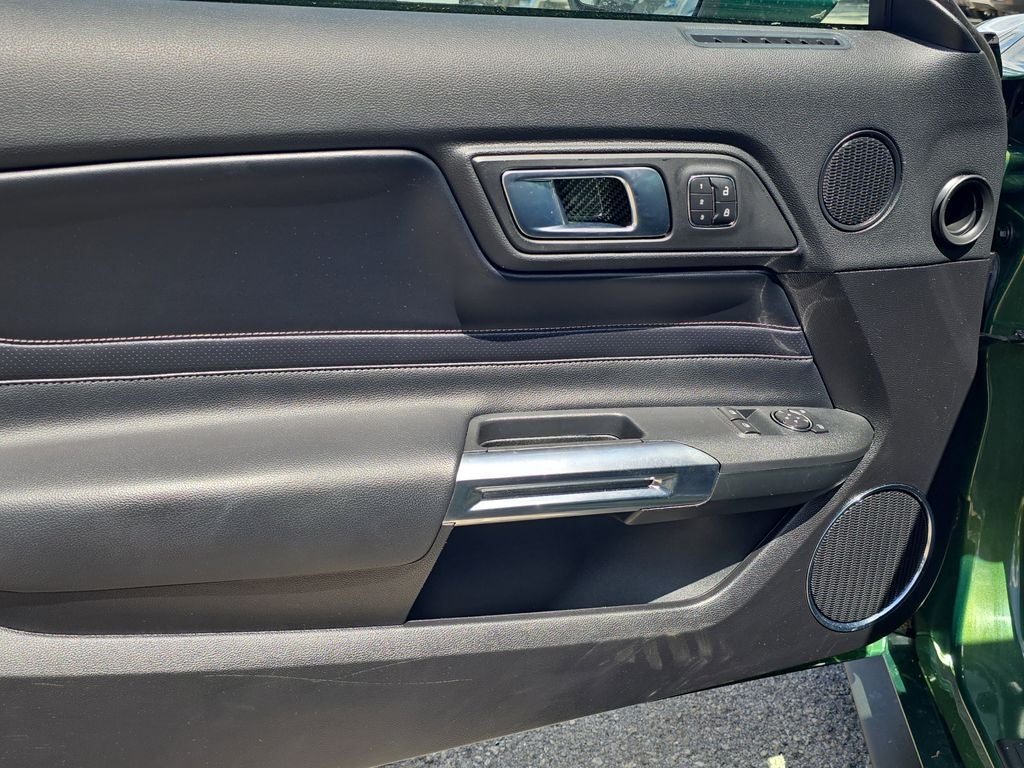 Finished in striking Eruption Green Metallic over Ebony leather-trimmed seating, this GT Premium stands out immediately. The aggressive design is highlighted by signature LED lighting, hood vents, a raised blade decklid spoiler, rain-sensing wipers, sequential LED taillamps, and 20-inch premium painted aluminum wheels wrapped in W-rated performance tires. Pony projection lamps and heated power mirrors with memory add both style and convenience.