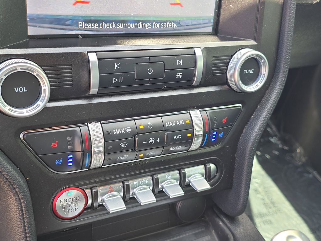 Inside, the GT Premium trim transforms the Mustang cabin into a true performance luxury environment. Leather-trimmed power seats, heated and ventilated front seats, dual-zone automatic climate control, a heated leather-wrapped steering wheel, ambient lighting, illuminated door sill plates, and a fully digital 12-inch LCD instrument cluster create a cockpit that blends comfort with high-tech performance.