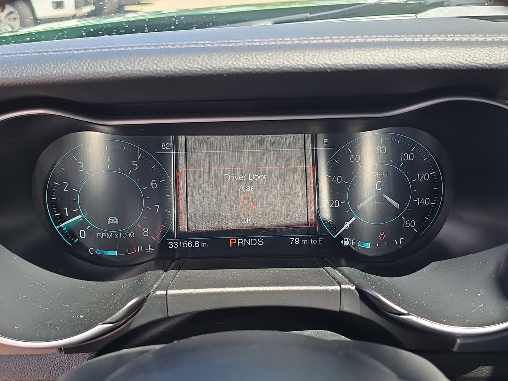 Technology features include SYNC 3 with an 8-inch touchscreen, Apple CarPlay and Android Auto compatibility, voice-activated touchscreen navigation, SiriusXM capability, FordPass Connect with remote connectivity, intelligent access with push-button start, and a universal garage door opener. Rear parking sensors and a rear view camera make maneuvering this performance coupe easier in tight spaces.