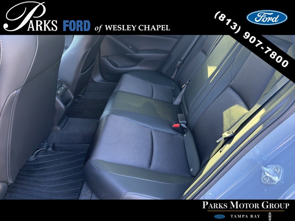 Inside, the cabin balances sport appeal and comfort. Front bucket seats include a 12-way power driver seat with 4-way power lumbar support, leather-wrapped steering wheel, leather gear shifter, dual-zone automatic climate control, push-button start, remote cargo access, and illuminated vanity mirrors. The 60/40 split-fold rear seat enhances cargo flexibility.