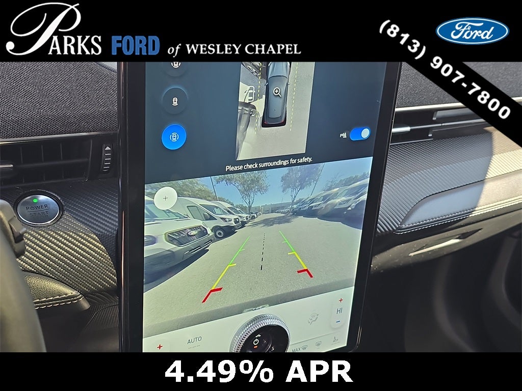 Technology is a standout feature. The large 15.5-inch center touchscreen anchors the dashboard and runs SYNC 4A with cloud-connected navigation, wireless Apple CarPlay and Android Auto compatibility, voice control, and over-the-air software updates. The Premium trim adds a B&O premium sound system, wireless charging pad, FordPass Connect with 4G LTE Wi-Fi hotspot capability, Phone As A Key functionality, and a 360-degree camera system that enhances visibility and confidence in tight spaces. BlueCruise hands-free highway driving capability adds another layer of advanced driver assistance for longer trips.