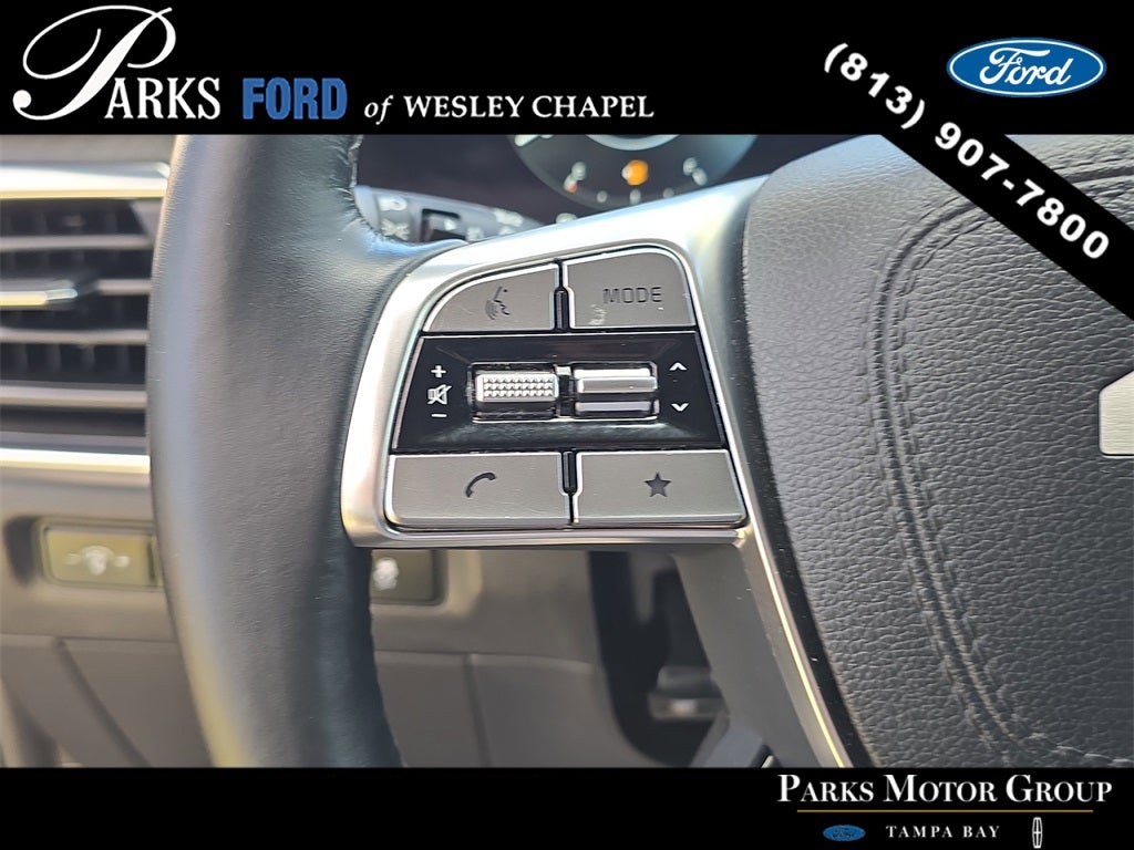 Exterior details reinforce the SX-Prestige’s upscale presence. Features include LED projector headlamps with automatic high beams, LED fog lamps, LED brakelights, power-folding heated mirrors with turn signal indicators, deep-tinted glass, chrome exterior accents, roof rails, a hands-free power liftgate, and distinctive 20-inch black-finish alloy wheels. The bold front grille and sculpted body lines give the Telluride a refined yet rugged appearance.