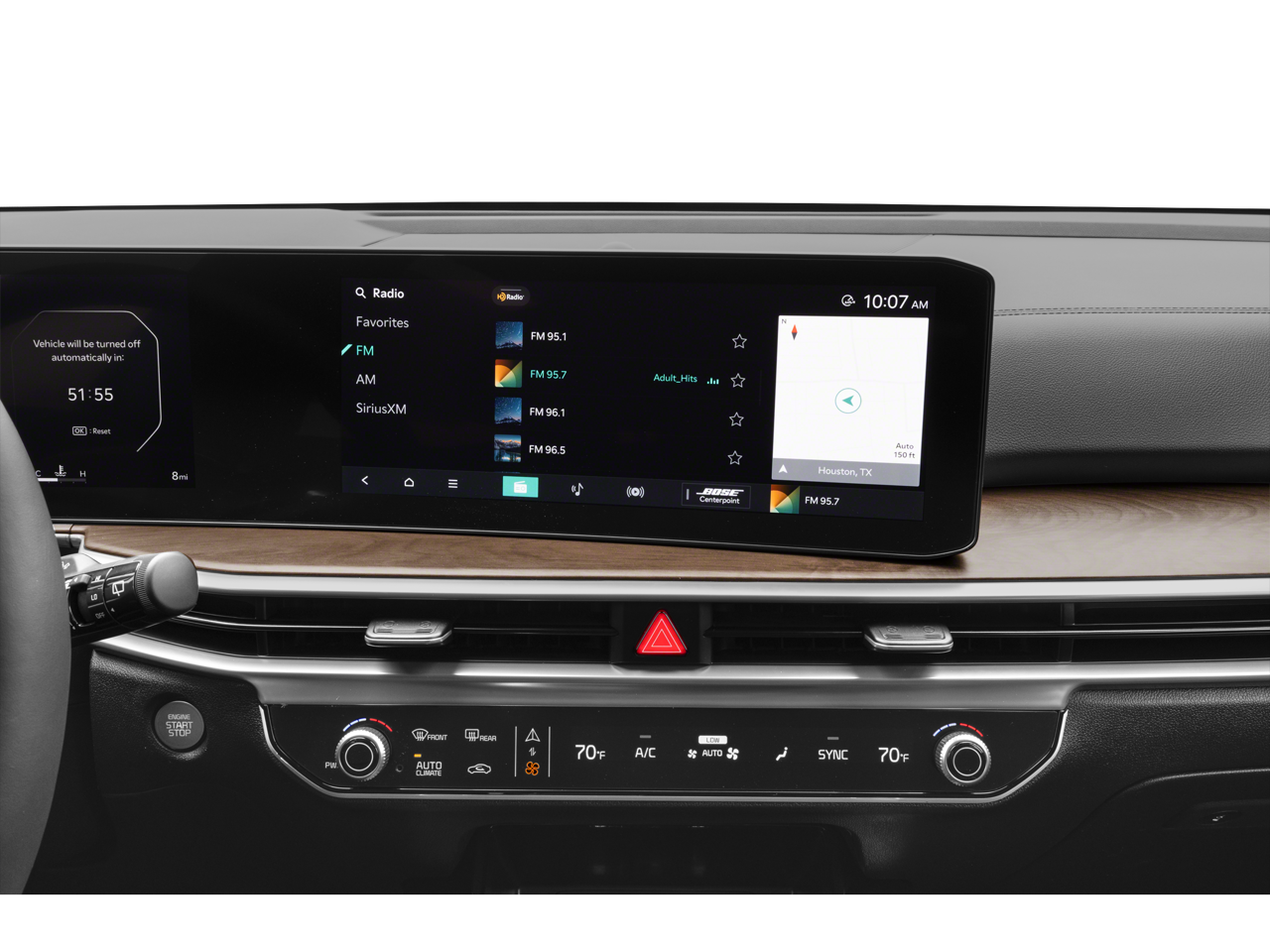 - Radio: AM/FM Bose Premium Audio System -inc: 12.3" curved display, navigation, HD Radio, Bluetooth w/audio remote control, wireless Android Auto and Apple CarPlay, voice recognition, Sirius XM, Kia Connect, Wi-Fi hot spot, Over-The-Air Updates (OTA), 12 speakers including subwoofer, center channel, external amp and USB